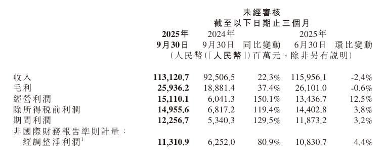 此外,在智能电动汽车及AI等创新业务带动下,小米集团研发开支由2024年第三季度的人民币60亿元增加52.1%至2025年第三季度的人民币91亿元;宣传与广告开支由2024年第三季度的人民币18亿元增加21.6%至2025年第三季度的人民币22亿元。
