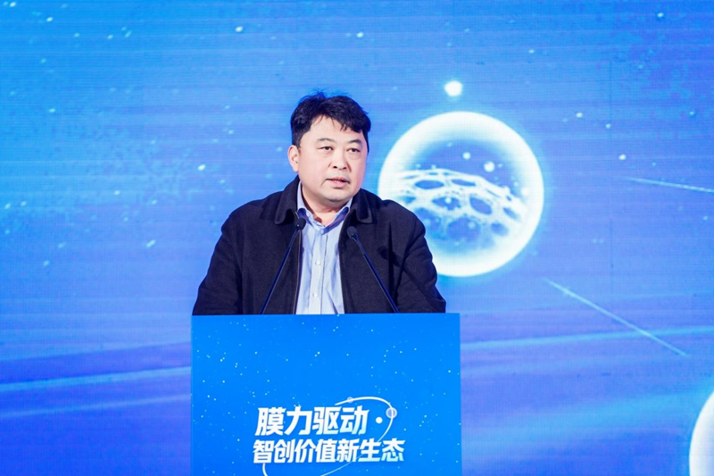 中国膜工业协会理事长郑根江发表致辞。他指出,功能膜材料作为国家战略性新兴产业的重要组成部分,已形成六大技术门类并实现全产业链覆盖。2024年我国膜工业总产值达4822亿元,约占全球29%,并持续保持高速增长,我国已成为全球膜产业规模最大的国家之一;他高度评价碧水源作为行业标杆企业,通过持续自主创新推出的四项新产品,为行业发展注入了新动力。2030年,行业产业总产值将达到8000亿元,他衷心期望碧水源在新一轮产业发展中勇立潮头,为构建膜产业新格局做出更大贡献,协会也将一如既往地支持碧水源发展。