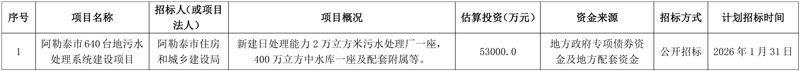 阿勒泰市640台地污水处理系统建设项目招标计划