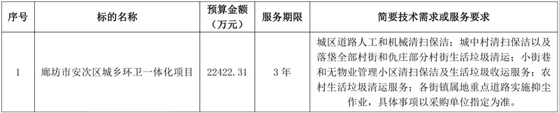 廊坊市安次区城乡环卫一体化项目公开招标交易公告
