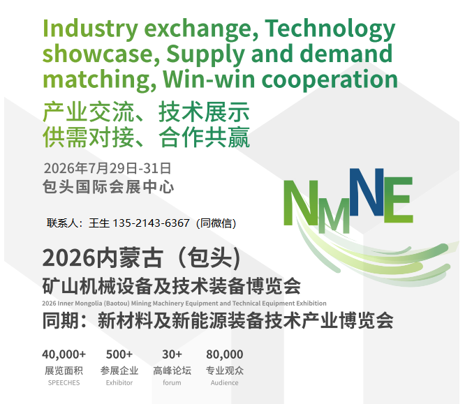 目前,全球能源结构转型加速,新材料技术成为产业升级核心支撑。包头市紧扣“1144”现代产业体系建设部署,以发展新质生产力为 ,聚焦新材料、矿业等核心领域,积极搭建产业交流、技术展示 、供需对接、合作共赢的高端平台,探讨未来国际国内新材料及新能源产业发展的机遇与挑战,分享行业前沿技术创新成果 、先进应用案例及绿色发展优异实践,全力以赴抓发展 、上项目、促转型,推动传统产业焕新升级,培育壮大新兴产业,提前布局未来产业,奋力打造老工业基地绿色转型的“包头模式”。为推动产业链上下游 对接 ,促进技术转化与项目落地,经研究,同意由内蒙古贸宸国际会议展览有限公司承办2026内蒙古(包头)新材料及新能源装备技术产业博览会主题展:矿山大会及装备技术展区将同步于2026年7月29日-31日在包头国际会展中心举办,专注新材料、新能源行业国际性、专业化的展会平台,汇聚众多涵盖新材料技术与设备、新能源技术与设备、矿山技术与装备、及成果应用、关键零部件、等具有影响力的参展商,完整展示新材料新能源产业链,打造深度的技术交流平台,通过行业趋势解读、政策导向与技术分享,充分挖掘行业发展新需求,共同开拓市场新机遇。