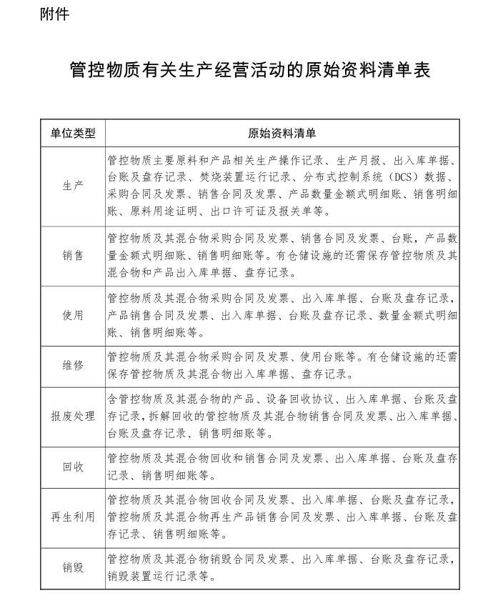 附件:管控物质有关生产经营活动的原始资料清单表