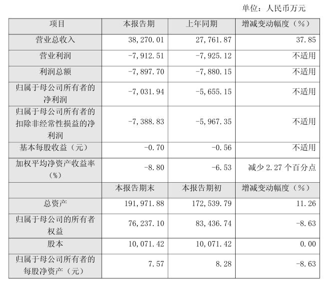 路德生物环保科技股份有限公司(简称:路德科技)近日发布《2025年度业绩快报》。报告期内,路德科技实现营业收入38,270.01万元,较上年同期上涨37.85%;实现归属于母公司所有者的净利润-7,031.94万元,较上年同期下降1,376.78万元;实现归属于母公司所有者的扣除非经常性损益的净利润-7,388.83万元,较上年同期下降1,421.48万元。报告期末,公司总资产191,971.88万元,较年初上涨11.26%;归属于母公司的所有者权益76,237.10万元,较年初下降8.63%;归属于母公司所有者的每股净资产7.57元,较年初下降8.63%。