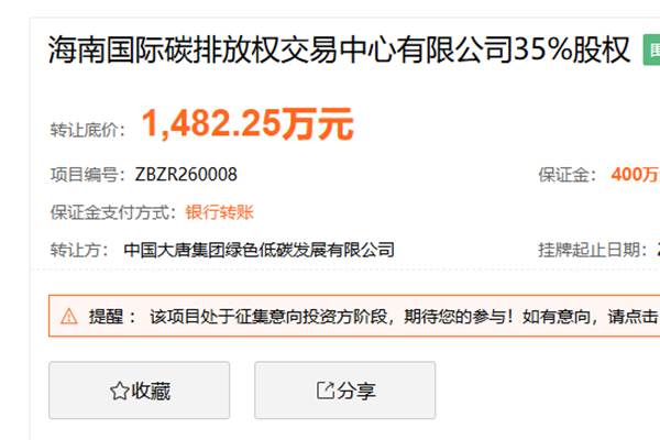 海南国际碳排放权交易中心35%股权挂牌转让!大唐绿色低碳拟退出