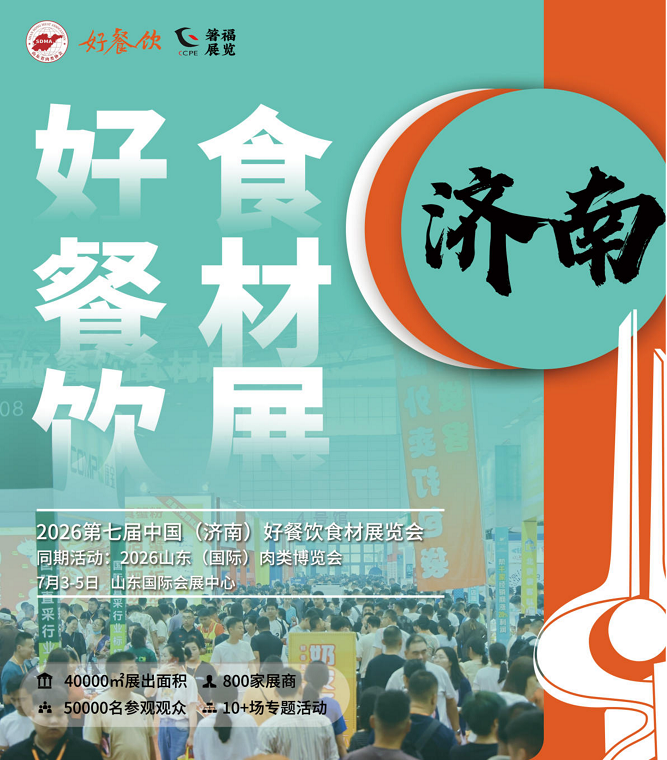 2026第七届中国(济南)好餐饮食材展2026山东(国际)肉类博览会,以“采购餐饮好产品”为主题,致力于为企业搭建交友、学习、交流、宣传、销售的平台。展会专注经销、订货、电商、创新、论坛及烹饪大赛,依托主办单位专业客户资源,立足济南,覆盖全国餐饮行业贸易。