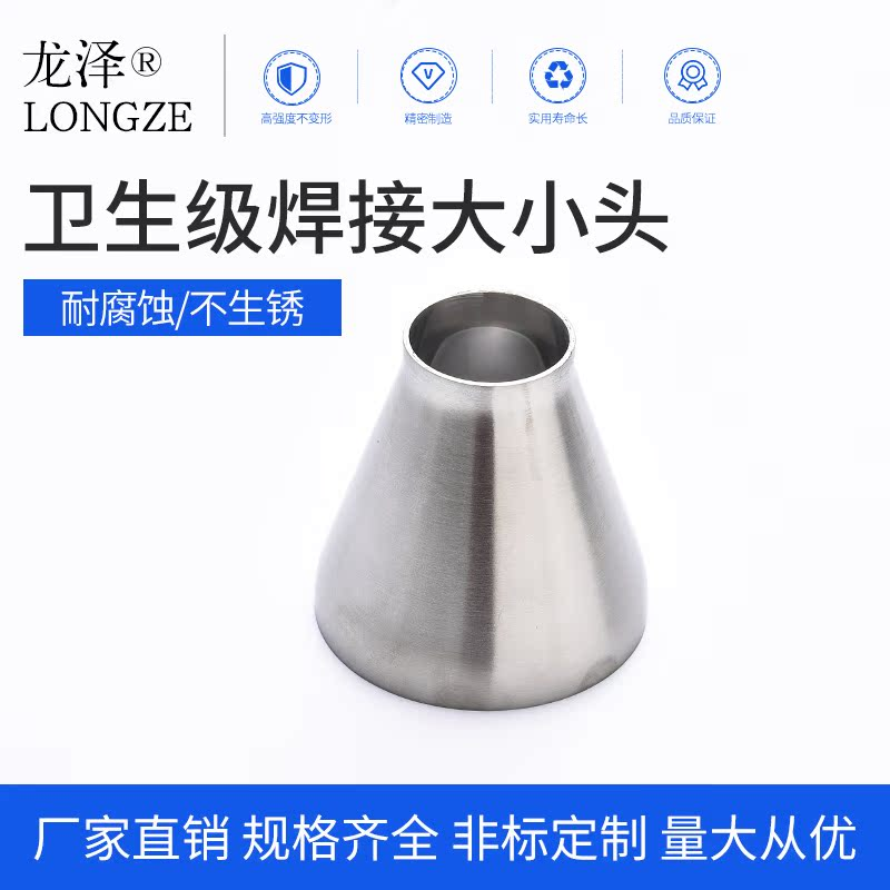 龙泽304/316L焊接卫生级抛光大小头焊接同心变径异径管道转换接头