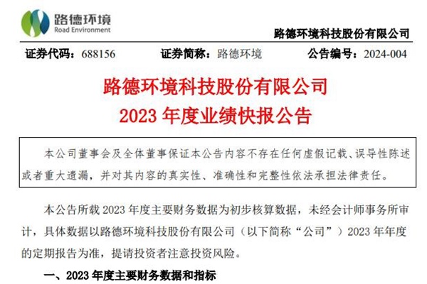 路德环境科技股份有限公司(简称:路德环境)近日发布《2023年度业绩快报》。报告显示,路德环境2023年营业总收入为34974.28万元,较上年同期的34207.97万元增长了2.24%;营业利润 3496.86万元,较上年同期下降31.23%;归属于母公司所有者的净利润为 2779.16万元,较上年同期的2592.61万元增长了7....