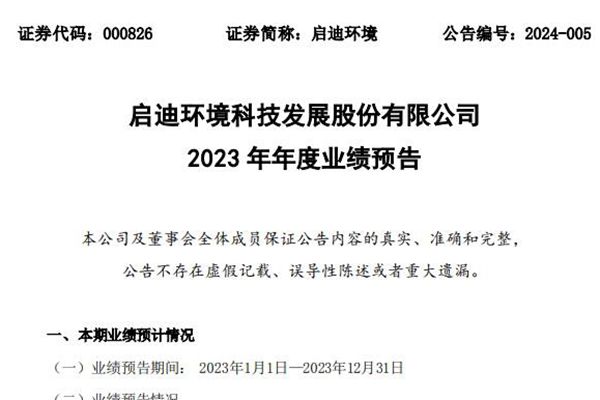 启迪环境科技发展股份有限公司(简称:启迪环境)近日发布《2023年年度业绩预告》。预告显示,启迪环境归属于上市公司股东的净利润亏损112000万元-159,000万元,比上年同期下降16.22%-64.99%;扣除非经常性损益后的净利润亏损112,000万元-159,000万元,比上年同期下降29.80%-84.27%;基本每股收益亏...