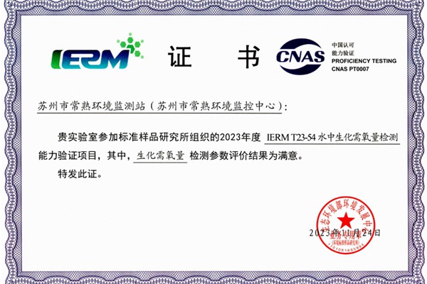 近日,常熟环境监测站顺利通过生态环境发展中心环境标准样品研究所组织的“水中生化需氧量检测”“水中六价铬检测”和江苏省市场监管局组织的“水中苯系物含量测定”能力验证,参加测试的各项指标全部获得“满意”结果。 为确保能力验证工作顺利开展,常熟...