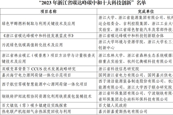 关于公布“2023年浙江省碳达峰碳中和科技发展十大科技创新”名单的通知 各有关单位: 为进一步贯彻落实党的二十大精神,反映浙江省双碳科技领域前沿和最新发展,促进经济社会绿色低碳转型和高质量发展,浙江省碳达峰碳中和科技创新联合体开展了“2023年浙江省碳达峰碳中和十大科技创新”推荐、遴...