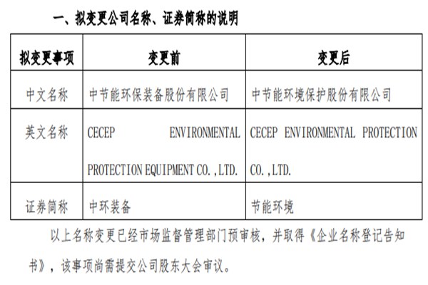 2023下半年,又一环保上市企业宣布更名! 8月8日,中节能环保装备股份有限公司(简称:中环装备)先后发布注册资本、经营范围变更公告与变更公司名称及证券简称的独立意见,确认将落实公司一系列信息改动。 据公告显示,中环装备全称将变更为“中节能环境保护股份有限公司”,证券简称相应变成“节能环境&rd...