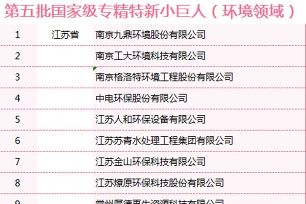 近日,各地陆续公示第五批国家级专精特新“小巨人”企业名单,全国总计3671家企业上榜。环境商会整理出其中的环境企业,各省市约71家环境企业入选,包括金科环境、鹏凯环境、人和环保、科林环保、盖亚环境、倍杰特、雪迪龙等,占总数的1.9%,较前几批平均4%的占比有所下降。其中,江苏省此次获认定的专精特新小巨人最多,约...