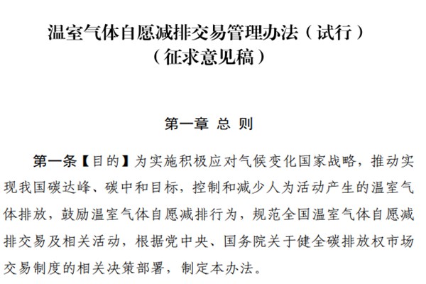 为实施积极应对气候变化国家战略,推动实现碳达峰碳中和目标,鼓励更广泛的行业、企业参与温室气体减排行动,进一步规范温室气体自愿减排交易及相关活动,生态环境部组织对《温室气体自愿减排交易管理暂行办法》(下称《暂行办法》)进行了修订,编制形成了《温室气体自愿减排交易管理办法(试行)》(征求意见稿)(下称《管理办法》),已经在2023年7月7...