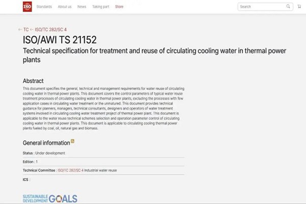 2023年6月20日,由华电机械院和南京大学联合主导提出的国际标准提案ISO/TS 21152 Technical specification for treatment and reuse of circulating cooling water in thermal power plants(中文名:《火电厂循环冷却水节水技术规范...