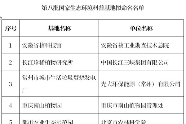 关于第八批国家生态环境科普基地拟命名名单的公示 根据《关于开展第八批国家生态环境科普基地申报工作的通知》(环办科财函〔2022〕38号)要求和《国家生态环境科普基地管理办法》(环科财函〔2019〕74号)有关规定,在各地方、各单位推荐的基础上,经形式审查、会议评议、线上和现场评议等程序,现将第八批国家生态环境科普基地拟命名名单(见附...