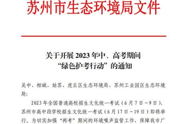 “嘘,请保持安静!”自5月22日24时起,苏州市已进入“禁噪期”,具体什么情况?一起来看! 2023年中、高考即将开始,为加强“两考”期间的环境噪声监管,确保广大考生有一个安静的学习、考试和休息环境,苏州市生态环境局印发“绿色护考行动”通...