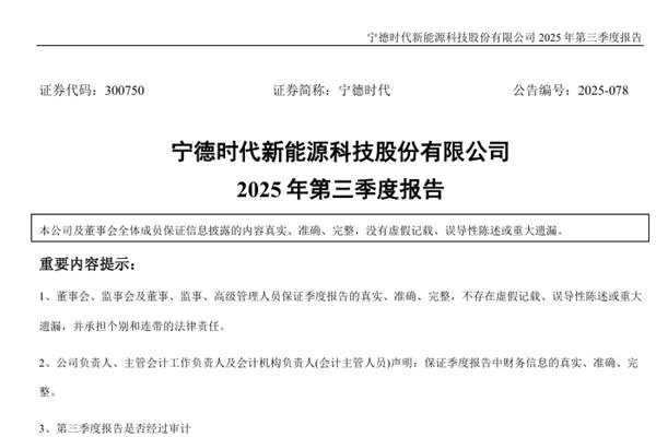 宁德时代新能源科技股份有限公司(简称:宁德时代)近日发布《2025年第三季度报告》。2025年前三季度,宁德时代实现营收2831亿元,同比增长9.28%;归母净利润490亿元,同比增长36.20%;扣非净利润436亿元,增长35.56%。第三季度,宁德时代营收1042亿元,同比增长12.90%,净利润185亿元,同比增长41.21%,...