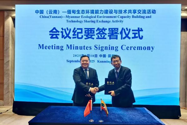 2025年9月18日,云南省生态环境厅主办的中国(云南)—缅甸生态环境能力建设与技术共享交流活动在昆明市举办,云南省生态环境厅副厅长赵子杰与缅甸自然资源和环境保护部环境保护司司长山坞签署会谈纪要,云南省生态环境厅副厅长袁国林出席活动并致辞,云南省人民政府外事办公室东南亚处相关负责人参加活动。云南省生态环境厅相关处室、所属单...
