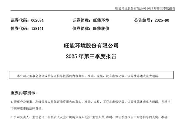 旺能环境股份有限公司(简称:旺能环境)近日发布《2025年第三季度报告》。2025年前三季度,旺能环境实现营业总收入25.55亿元,同比增长5.18%;归母净利润5.51亿元,同比增长7.61%;扣非净利润5.46亿元,同比增长4.43%;经营活动产生的现金流量净额为11.78亿元,同比增长5.61%。图源:旺能环境公告 旺能环境主...