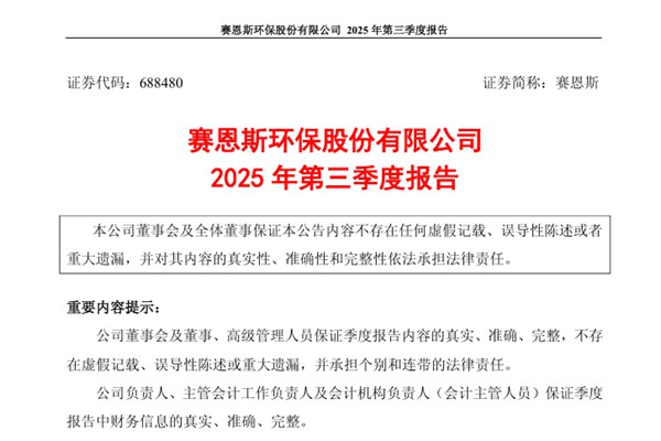 赛恩斯环保股份有限公司(简称:赛恩斯)近日发布《2025年第三季度报告》。2025年前三季度,赛恩斯实现营业收入为6.77亿元,同比增长15.81%;归母净利润为7403.64万元,同比下降48.32%;扣非归母净利润为7196.54万元,同比下降10.78%;基本每股收益0.78元。图源:赛恩斯公告 赛恩斯主营业务对应的产品及服务...