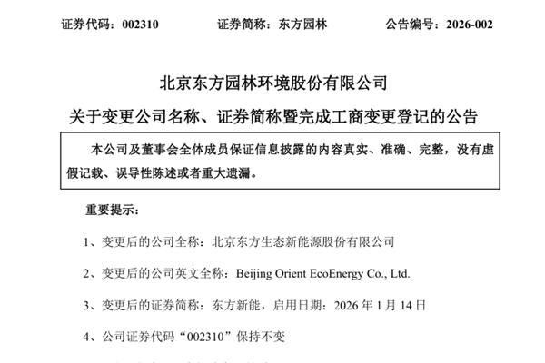 北京东方园林环境股份有限公司(简称:东方园林)近日公告称,公司持续推进《北京东方园林环境股份有限公司重整计划》,全面转型至以风光电储为核心的新能源领域,现新能源业务已成为公司增长的核心引擎和未来发展的主要方向。为使公司名称更加契合公司当前的实际情况与长远发展战略,与战略方向、主营业务结构及未来发展规划更为匹配,提升公司的品牌辨识度和市...
