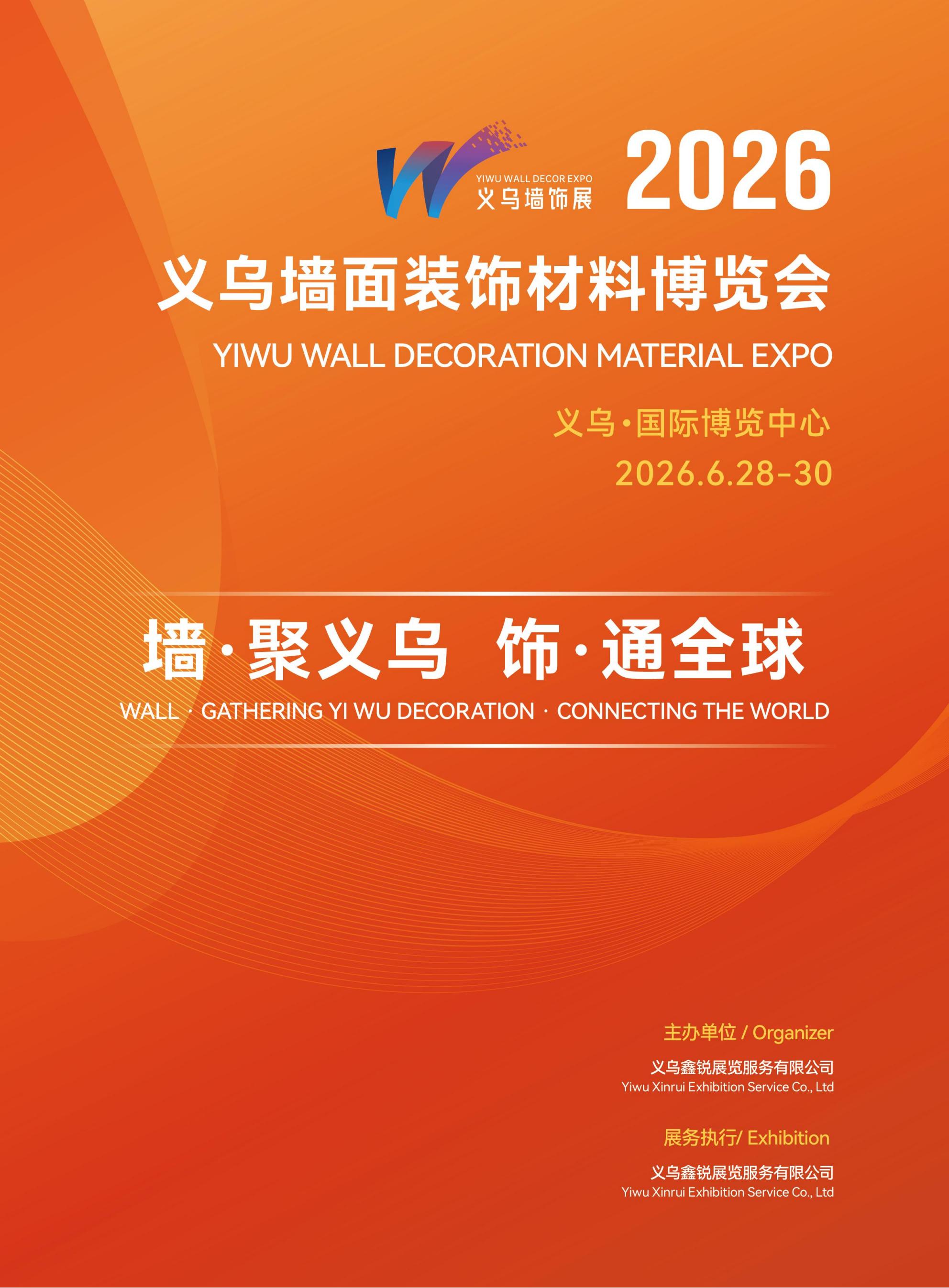 2026义乌墙面装饰材料博览会 时间:2026年6月 28-30日 地点:义乌国际博览中心 主办单位:义乌鑫锐展览服务有限公司 展务执行:义乌鑫锐展览服务有限公司 【市场分析与需求】 随着人们对家居环境要求的提高,墙面地面装饰材料市场规模不断扩大,样式多样化,对环保材料的需求增长,以及国家对城区改造,绿色改造,装修补贴等政策下,消费者对...
